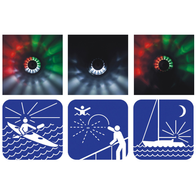 このナビライトは船のナビゲーションライトとしての用途以外にも、落水者に向けて投げ込んで落水者発見のためのエマージェンシーライトとして、また室内、室外の緊急用のライトとして等々幅広く使用できます。