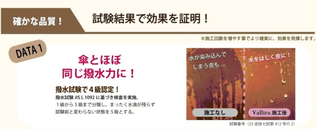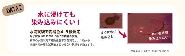 水滴試験、変退色4-5級認定(撥水試験JIS15770に基づき検査を実施)