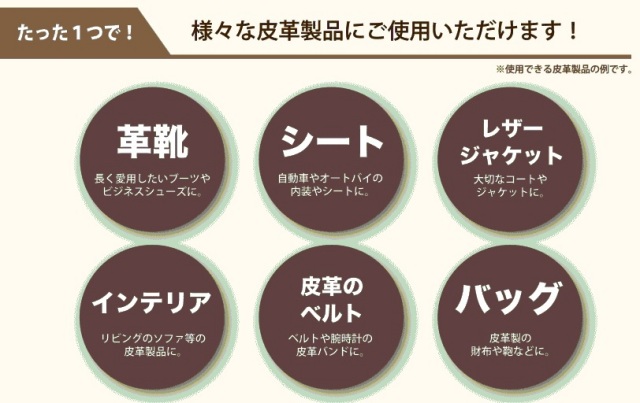 「塗るだけ」で皮革製品に保護効果・耐水性・撥水性・防汚・防カビ・保湿効果を与えます。